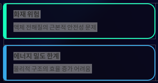 구조로 되어 있다. 이 중 액체 전해질은 화재와 폭발 위험의 핵심 원인으로 지적돼 왔다.
