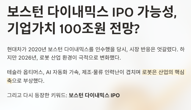 2026.01.14 - [분류 전체보기] - 보스턴 다이나믹스 인수의 진짜 의미|기술·가치·현대차 현대모비스 전략