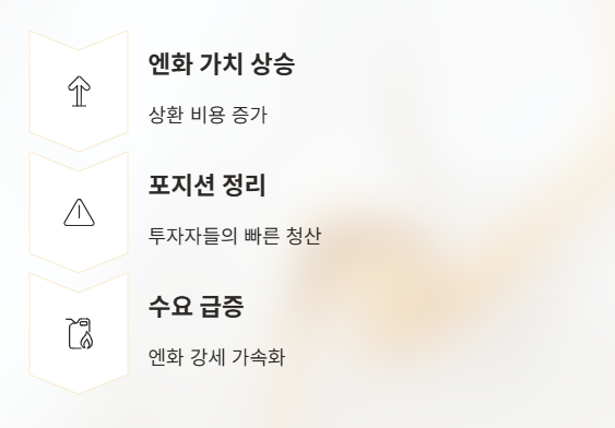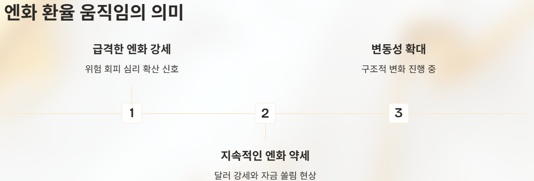 - 엔화가 갑자기 강세를 보일 때 → 위험 회피 심리 확산