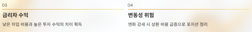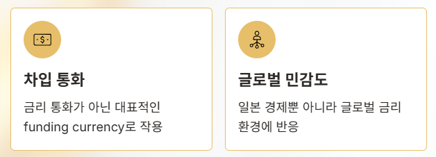 엔화는 오랜 기간 초저금리 정책 아래에서 대표적인 차입 통화(funding currency)로 활용돼 왔다. 글로벌 투자자들은 낮은 금리로 엔화를 빌린 뒤, 상대적으로 금리가 높은 달러 자산이나 신흥국 자산에 투자하는 전략을 반복해 왔다.