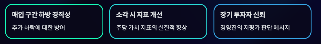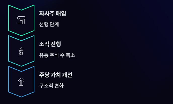 자사주 매입은 그 자체로 끝나는 정책이 아니라, 이후 소각을 통해 유통 주식 수를 줄이기 위한 선행 단계다.