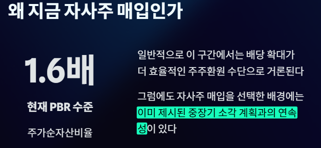 그럼에도 불구하고 자사주 매입을 선택한 배경에는 이미 제시된 중장기 소각 계획과의 연속성이 있다.