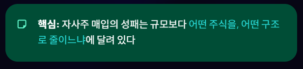 자사주 매입의 성패는 규모보다도 어떤 주식을, 어떤 구조로 줄이느냐에 달려 있다는 점에서