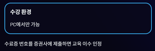- PC에서만 수강 가능