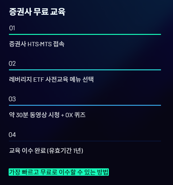 - ‘레버리지 ETF/ETN 사전교육’ 메뉴 선택