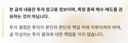본 글의 내용은 투자 참고용 정보이며, 특정 종목 매수·매도를 권유하는 것이 아닙니다.