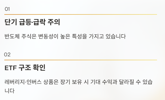 - ETF 활용 시 섹터 ETF 중심 + 이벤트 구간 레버리지 활용 전략 가능