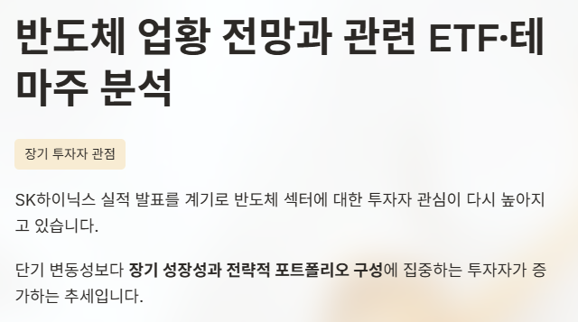 단기 주가 변동보다 장기 성장성과 섹터별 투자 전략에 주목하는 투자자들이 늘고 있으며, 관련 ETF와 테마주 활용에 대한 문의도 많아지고 있다.