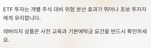 - 단, 거래 전 레버리지 ETF 사전 교육과 기본 예탁금 요건이 필요합니다.