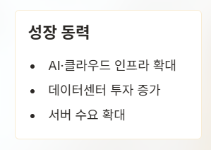 - 글로벌 IT 수요 확대: 서버, 데이터센터, AI·클라우드 인프라 투자 증가