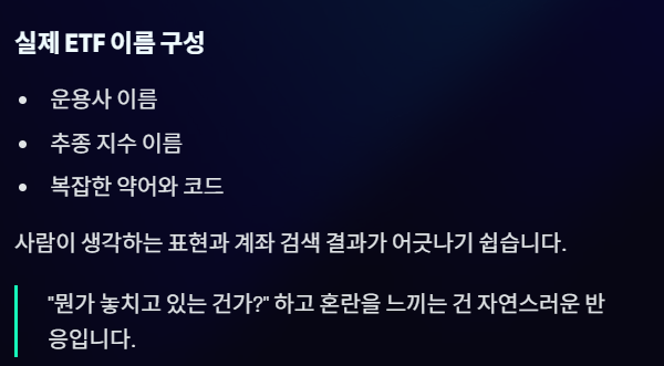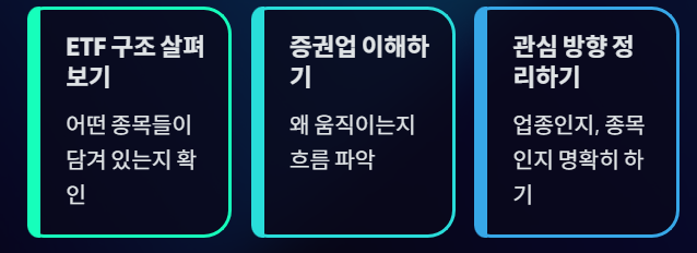 - ETF는 “업종 흐름을 이해하는 도구”에 가깝고