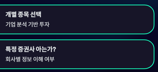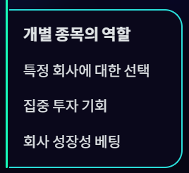 - 개별 종목은 “특정 회사에 대한 선택”에 가깝다