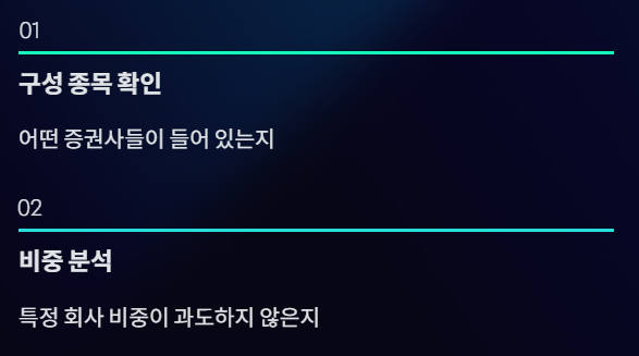 - 금융 ETF인지, 증권 중심 ETF인지