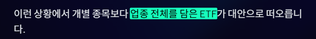 이런 상황에서 개별 종목보다 업종 전체를 담은 ETF가