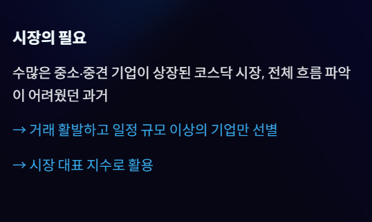 개별 기업 하나의 주가가 아니라, 코스닥 시장의 방향성과 투자 심리를 보여주는 역할을 한다.