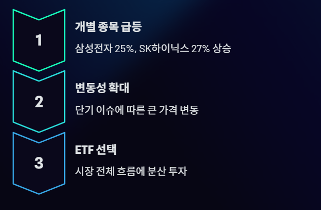 이러한 변화의 배경으로는 개별 종목 급등에 따른 변동성 확대가 꼽힌다. 연초 이후 삼성전자 주가는 약 25%, SK하이닉스는 27% 이상 상승했고, 코스닥 대표 종목인 에코프로비엠과 에코프로 역시 단기간에 큰 폭으로 올랐다.