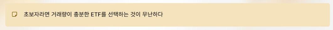 초보자라면 우선 거래량이 충분한 ETF를 선택하는 것이 일반적으로 무난하다.