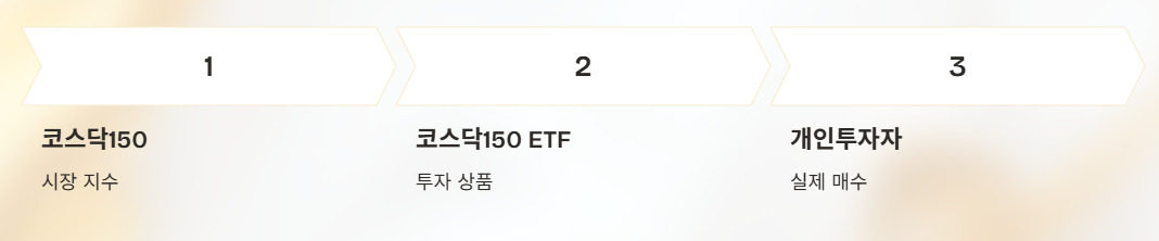 코스닥150(지수) → 코스닥150 ETF → 개인투자자가 실제로 매수