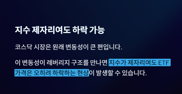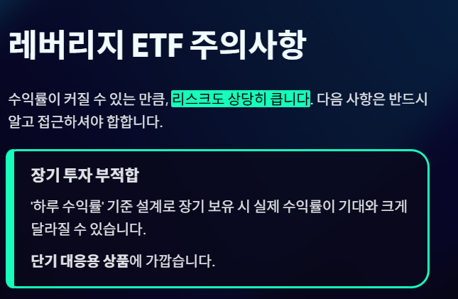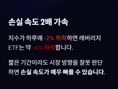 레버리지 ETF는 수익률이 커질 수 있는 만큼, 리스크도 상당히 큽니다.