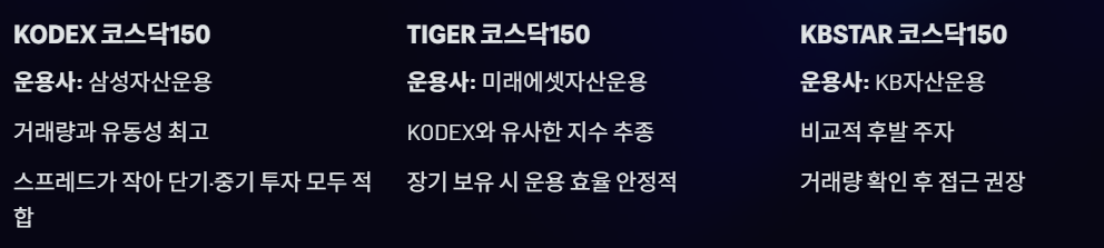 하지만 코스닥150 ETF라고 해서 모두 같은 상품은 아니며,