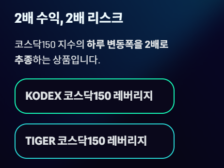 레버리지 ETF는 코스닥150 지수의 하루 변동폭을 2배로 추종하는 상품입니다.