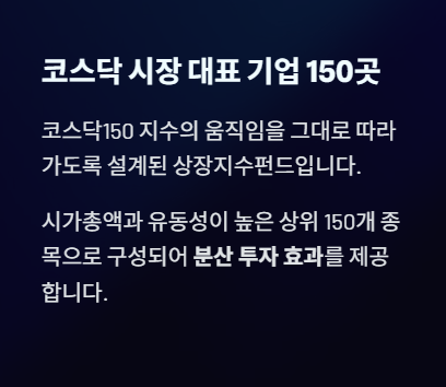 =>코스닥 시장의 대표 기업 150곳에 분산 투자하는 효과를 얻을 수 있습니다.