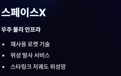 - 스페이스X·xAI: 머스크가 소유한 비상장 기업