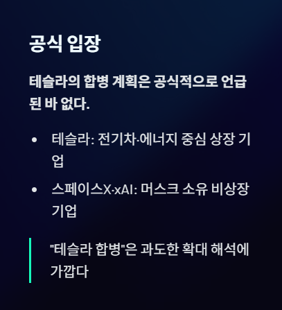 “테슬라 합병”이라는 표현은 과도한 확대 해석에 가깝다.