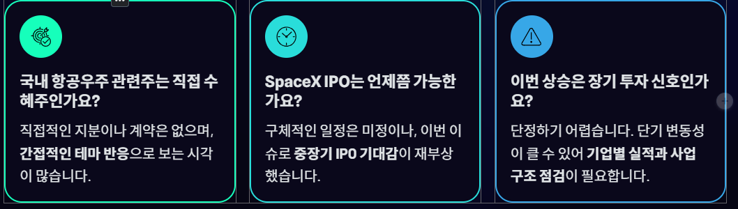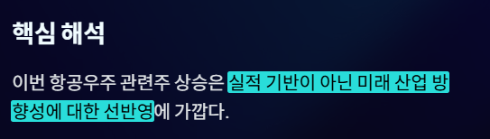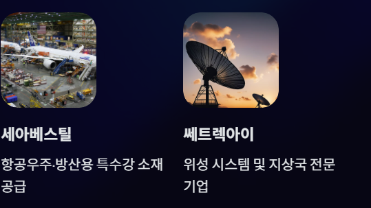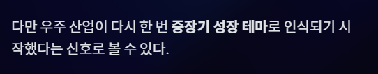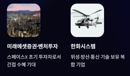 - 우주 산업과의 연관성이 가장 직접적인 종목 중 하나