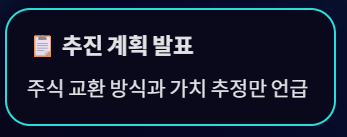 - 주식 교환 방식과 기업 가치 추정만 언급된 상태