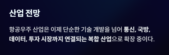 항공우주 산업은 이제 단순한 기술 개발을 넘어통신, 국방, 데이터, 투자 시장까지 연결되는 복합 산업으로 확장 중이다.