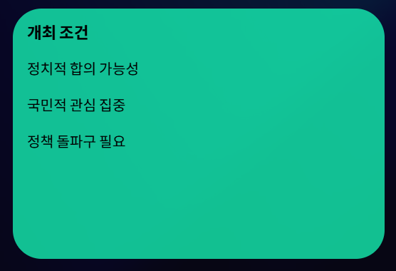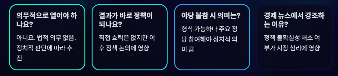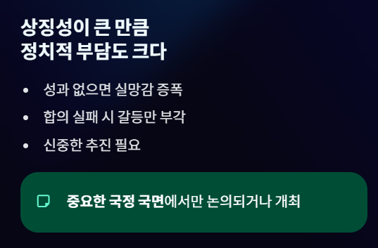 - 갈등 지속 → 정책 불확실성 확대
