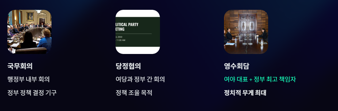 → 여야 대표와 정부 최고 책임자가 함께 논의하는 정치적 최고위 회동