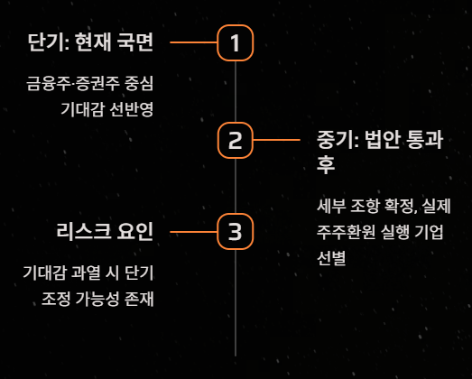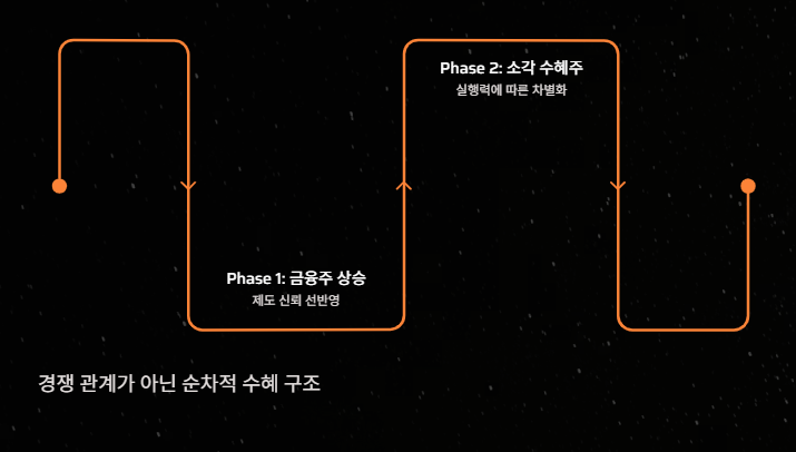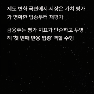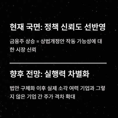 이 때문에 정책 기대가 생길 때마다 금융주가 **‘첫 번째 반응 업종’**이 되는 경우가 많다.