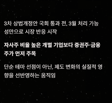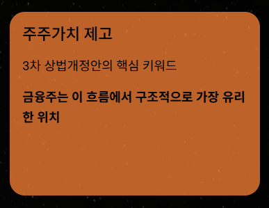 - 3차 상법개정안은 아직 통과 전, 현재는 ‘기대 국면’