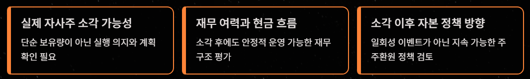단순히 “자사주를 많이 갖고 있다”는 이유만으로 접근하면