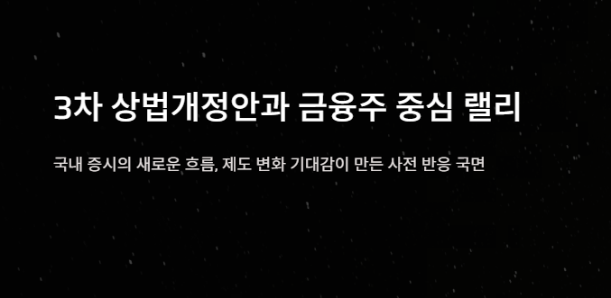 최근 국내 증시는 3차 상법개정안을 둘러싼 기대감 속에서 새로운 흐름을 보이고 있다.