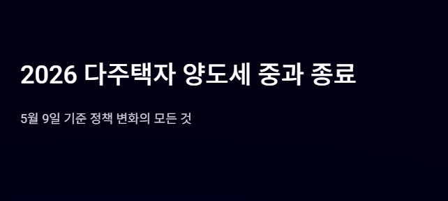 2026년 부동산 시장 최대 이슈 중 하나는 다주택자 양도소득세 중과(가중세율) 예외조항의 종료와 새로운 유예 기준이다.