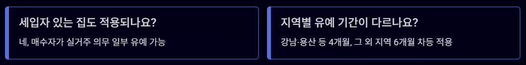 - 서울 강남3구·용산 등 주요 지역: 약 4개월 유예