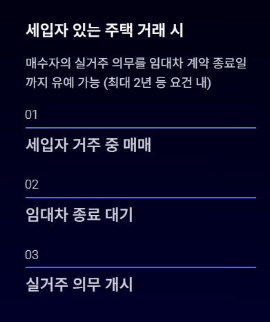✔ 매매 계약 체결 기준으로 세입자가 남은 주택의 실거주 의무를 일정 기간 미룰 수 있는 예외 규정도 마련됐다.