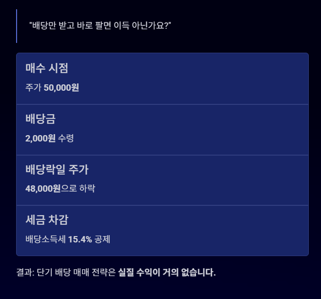 즉, 배당만 노린 단기 매매 전략은 생각보다 매력적이지 않습니다.