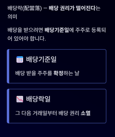 ✔ 배당락은 ‘배당을 받을 권리가 사라지는 날’입니다.