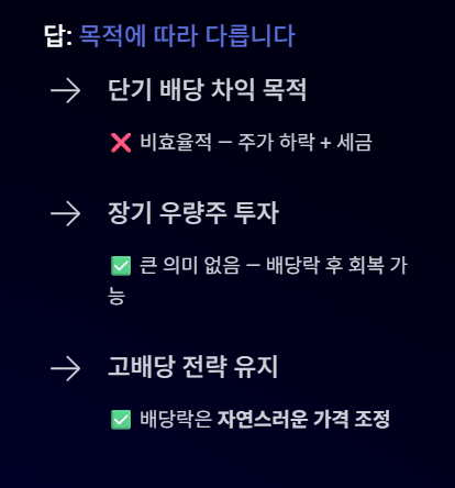 ✔ 고배당 전략 유지 → 배당락은 자연스러운 과정