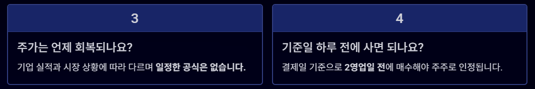 실제로 우량주는 배당락 이후 빠르게 회복하는 경우도 많습니다.