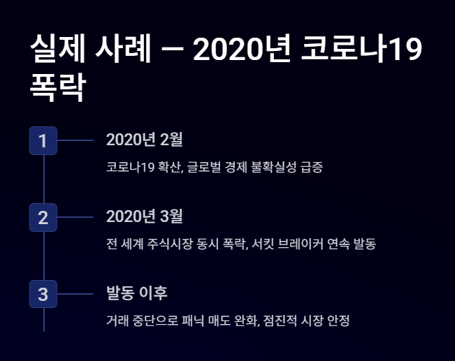 이처럼 예상치 못한 글로벌 위기 상황에서는 서킷 브레이커가 시장 안정 장치로 중요한 역할을 하게 됩니다.