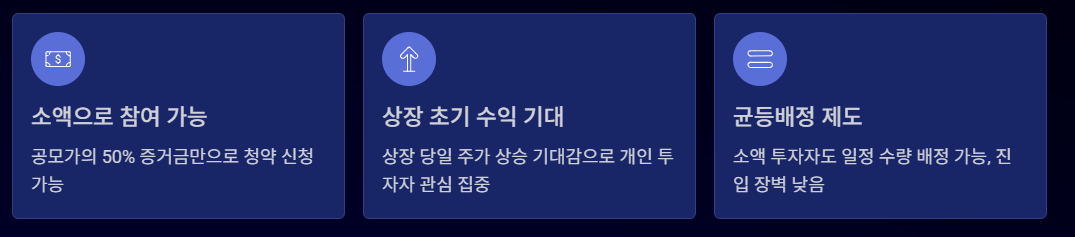 따라서 큰 금액이 없어도 공모주 투자에 참여할 수 있는 장점이 있습니다.