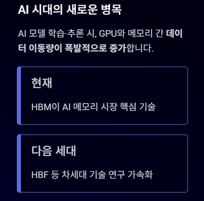 현재는 HBM이 AI 메모리 시장의 핵심 기술로 자리 잡고 있지만, 앞으로는 그 다음 세대 기술이 등장할 가능성도 있습니다.