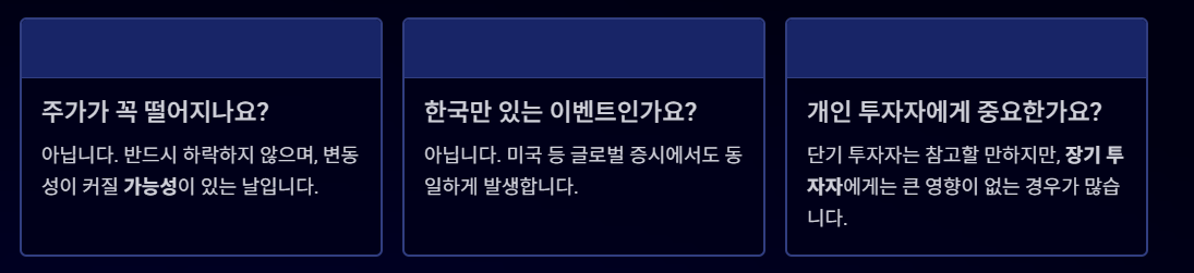 단기 투자자에게는 참고할 만한 이벤트지만 장기 투자자에게는 큰 영향이 없는 경우가 많습니다.