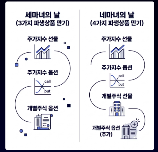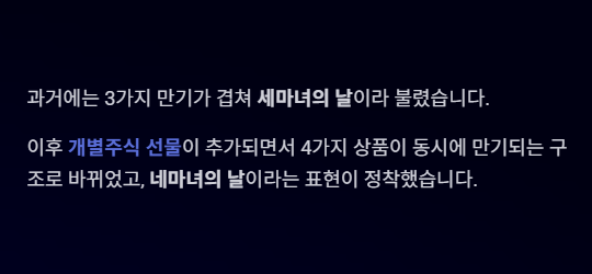 하지만 이후 개별주식 선물이 추가되면서 네 가지 상품이 동시에 만기되는 구조가 되었고,
