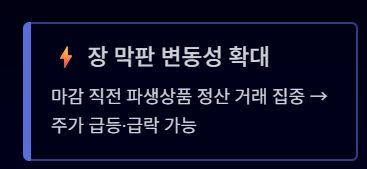 마감 직전에 거래량이 급증하면서 예상치 못한 변동이 발생할 수 있습니다.